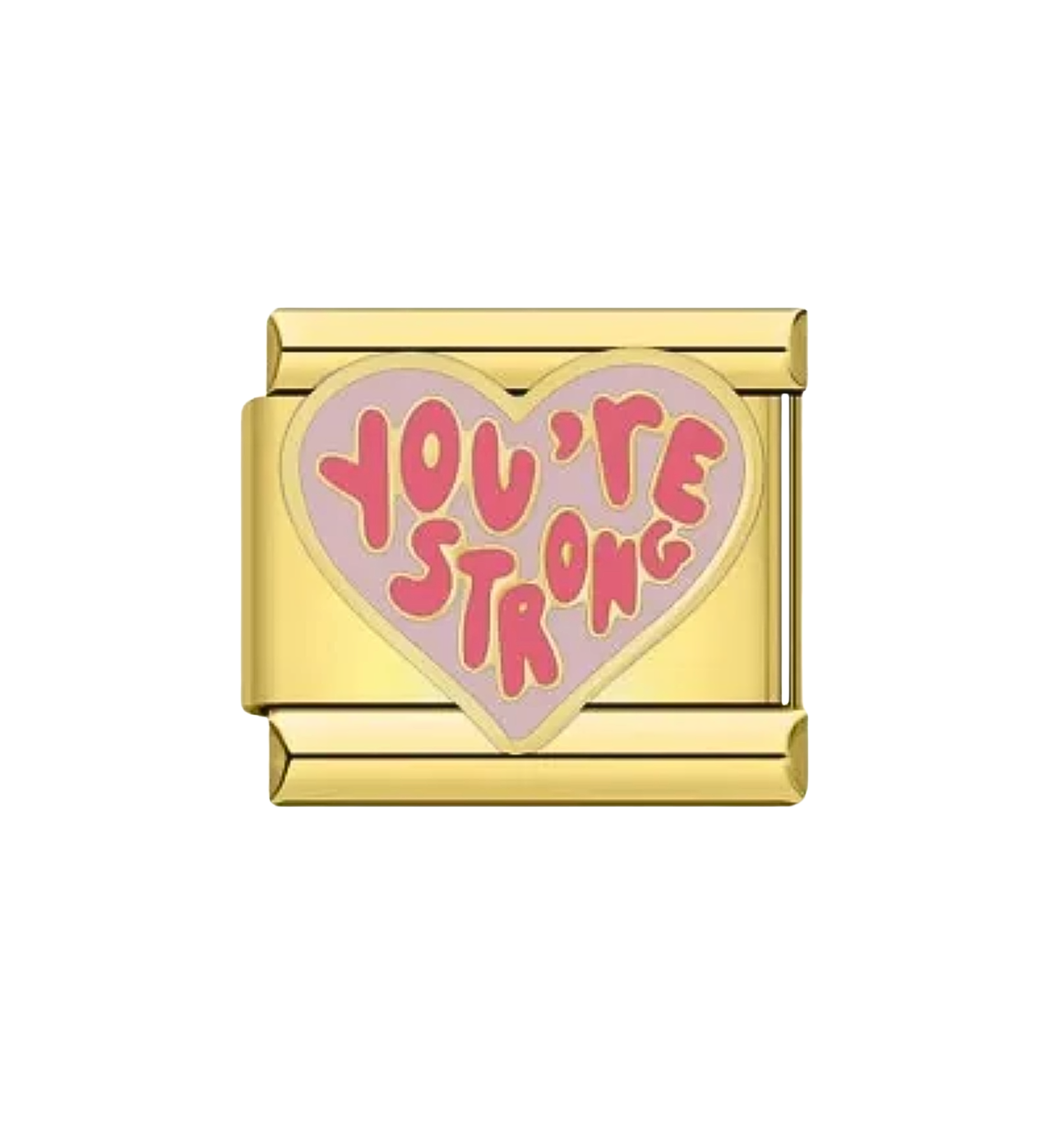 Charm de acero inoxidable you're strong corazón rosa dorado