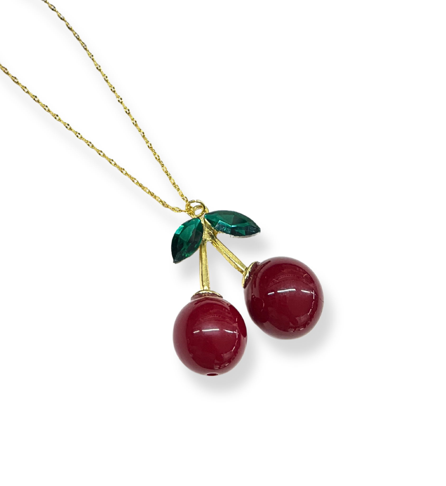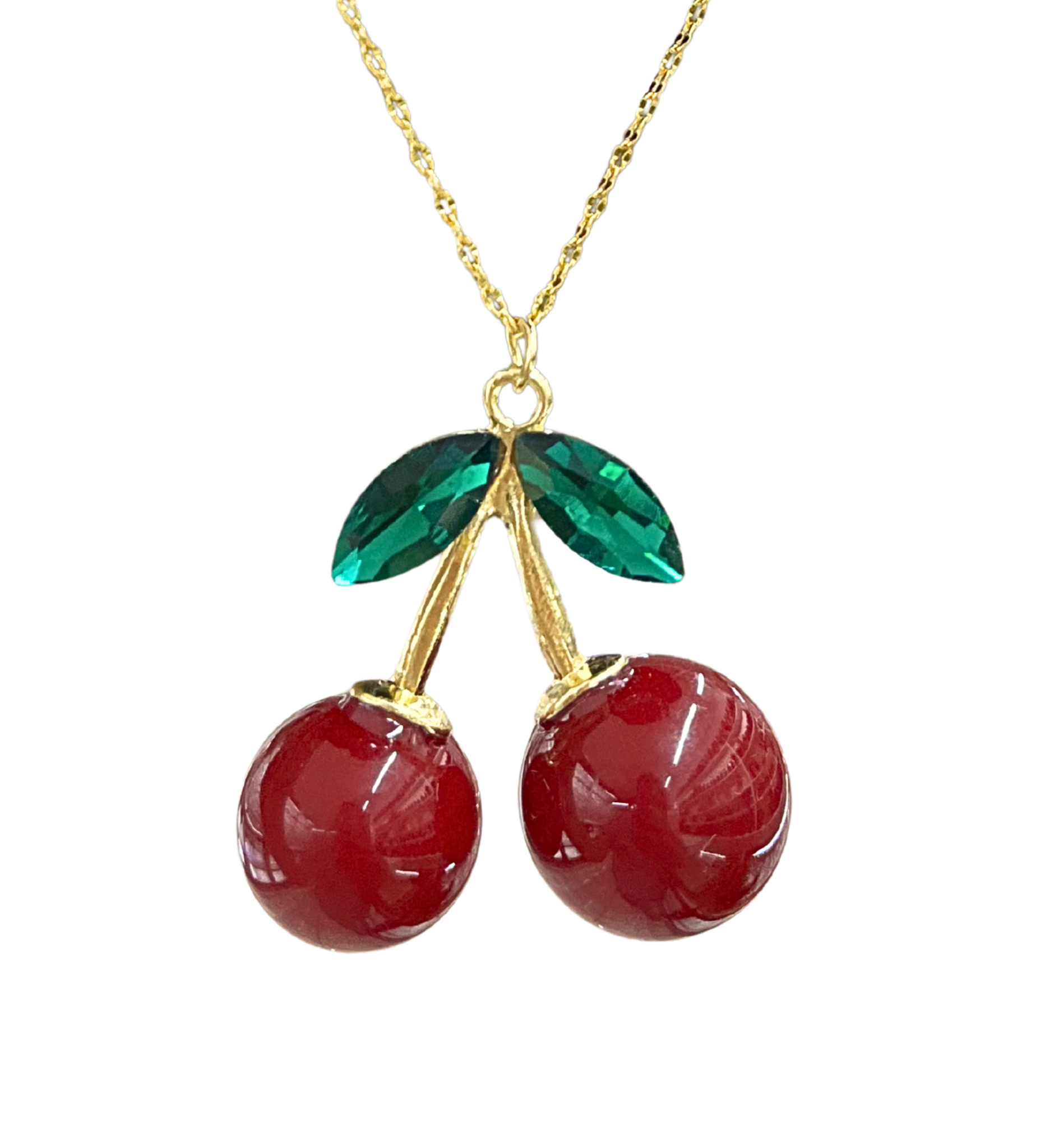 Juego de Cereza Cadena Acero Inoxidable con dije en chapa de oro
