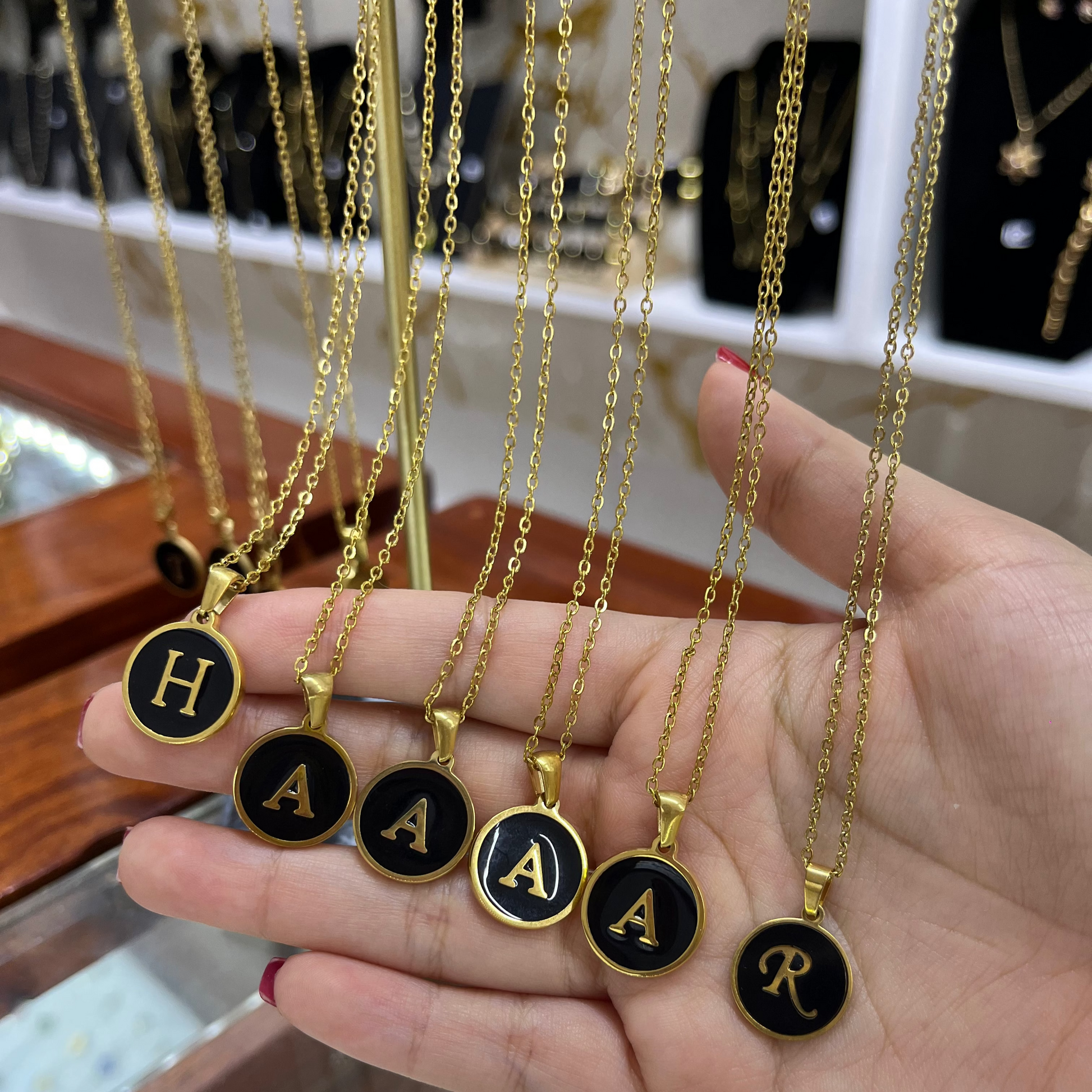 collares de acero inoxidable de letras color negro